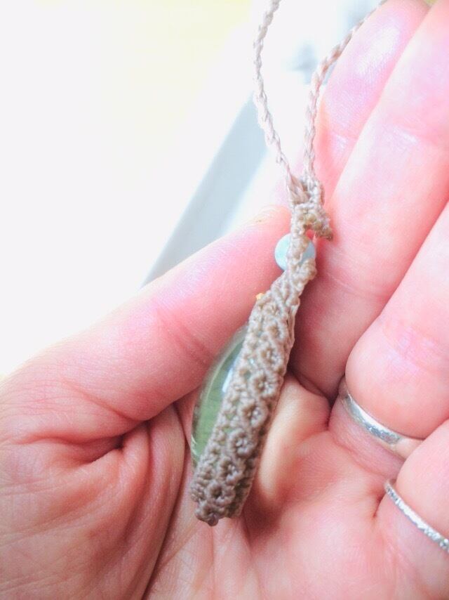 爽やかなグリーンアメジストのマクラメペンダントです。