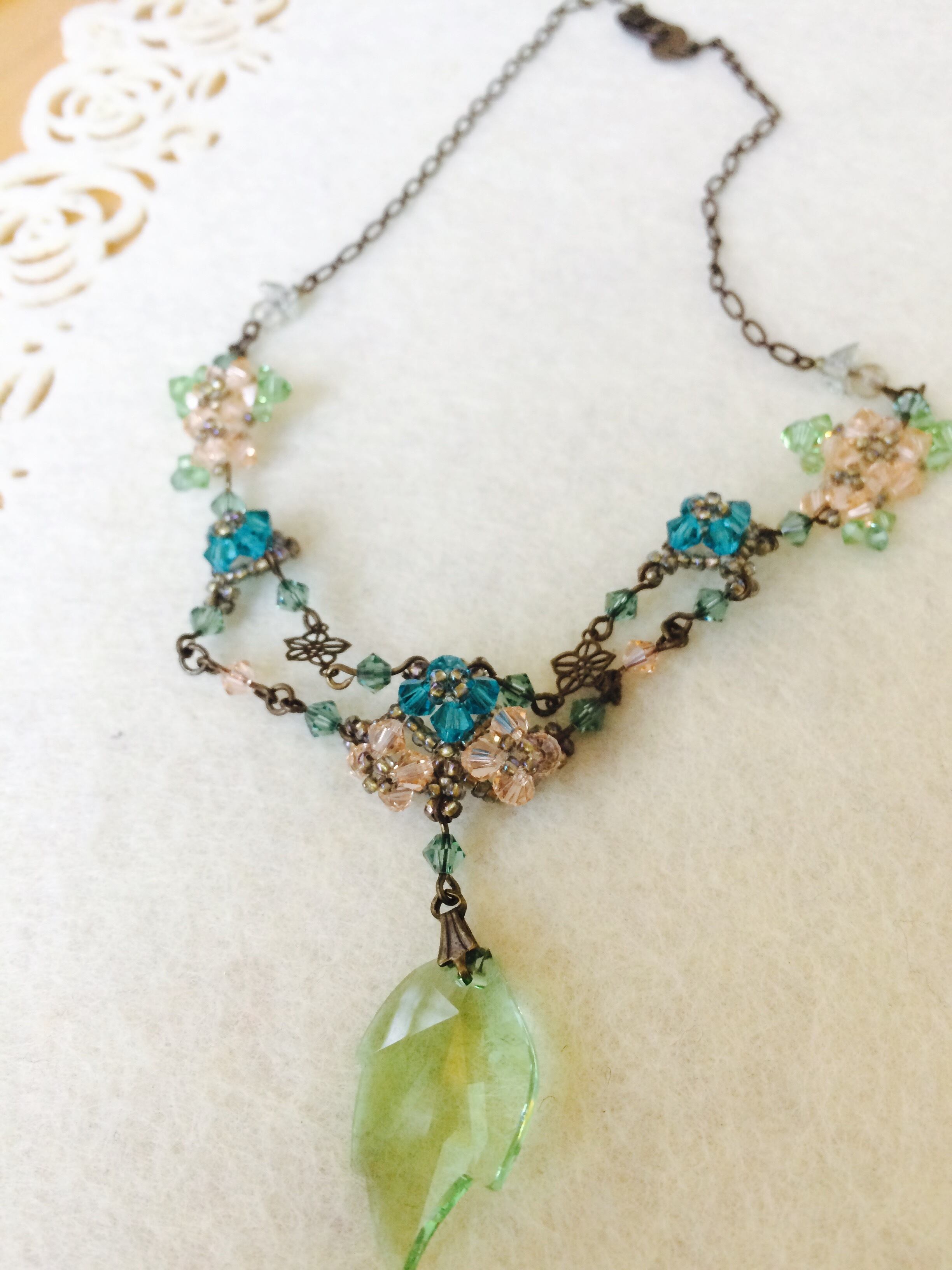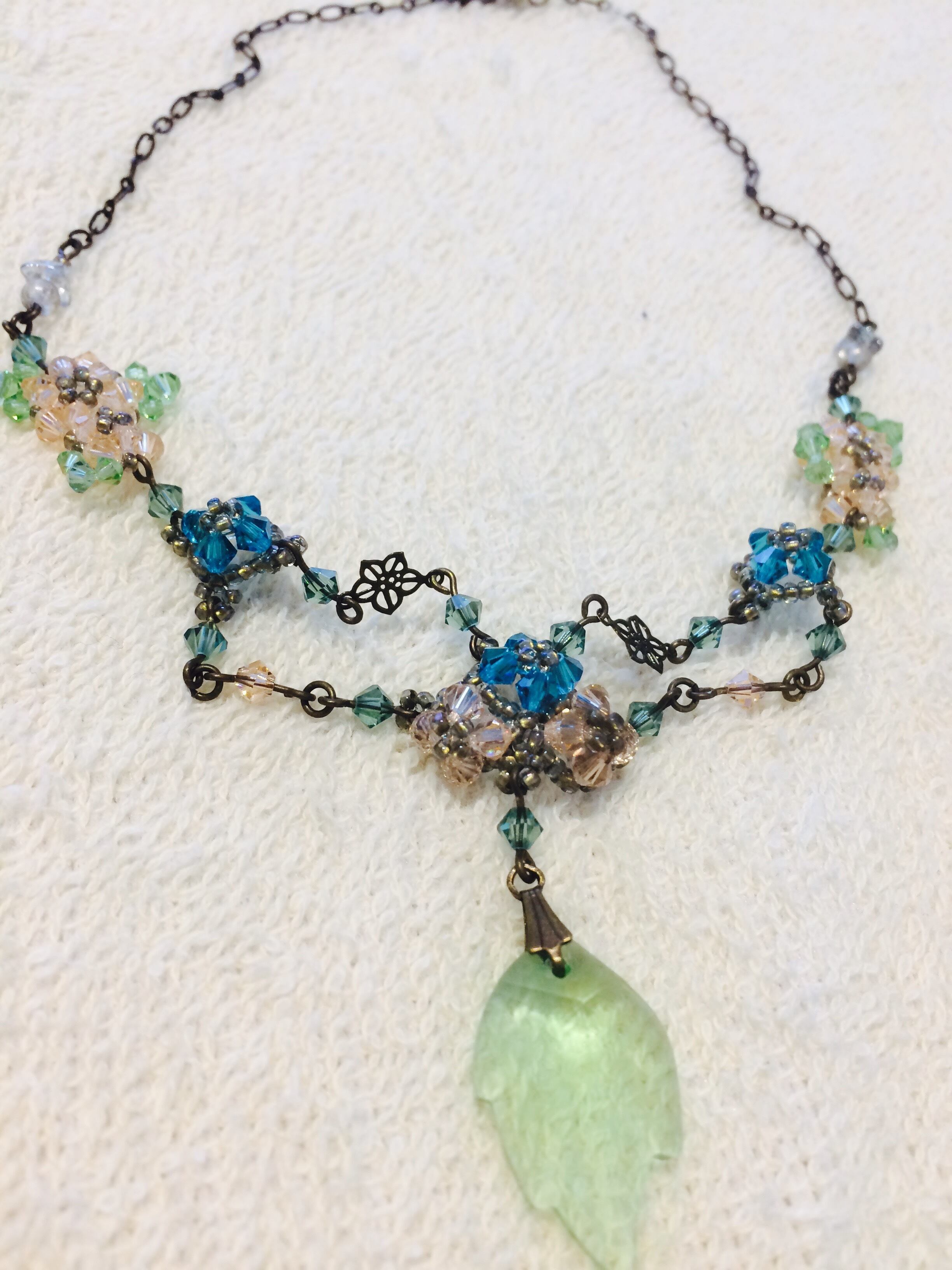 チェコビーズとスワロフスキーのネックレス