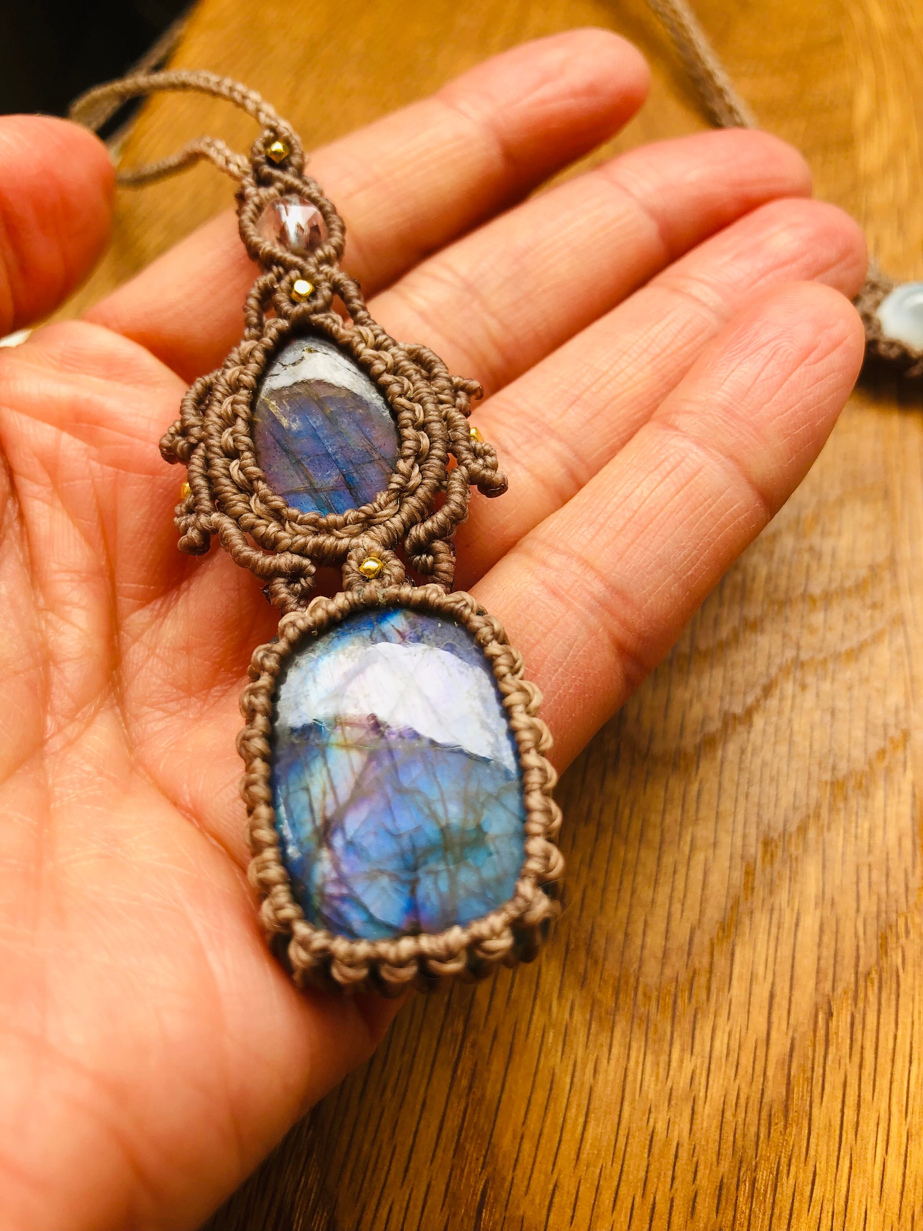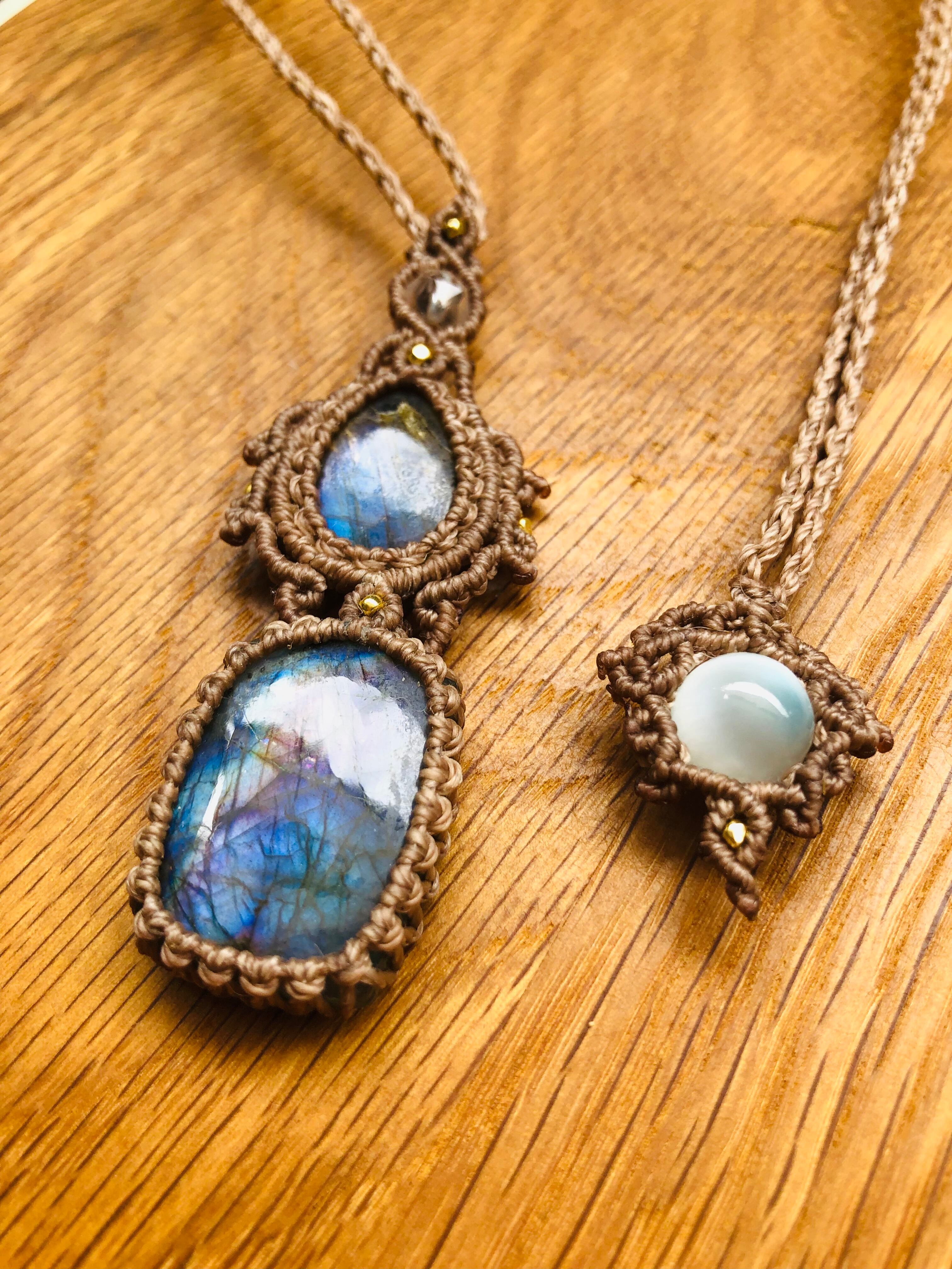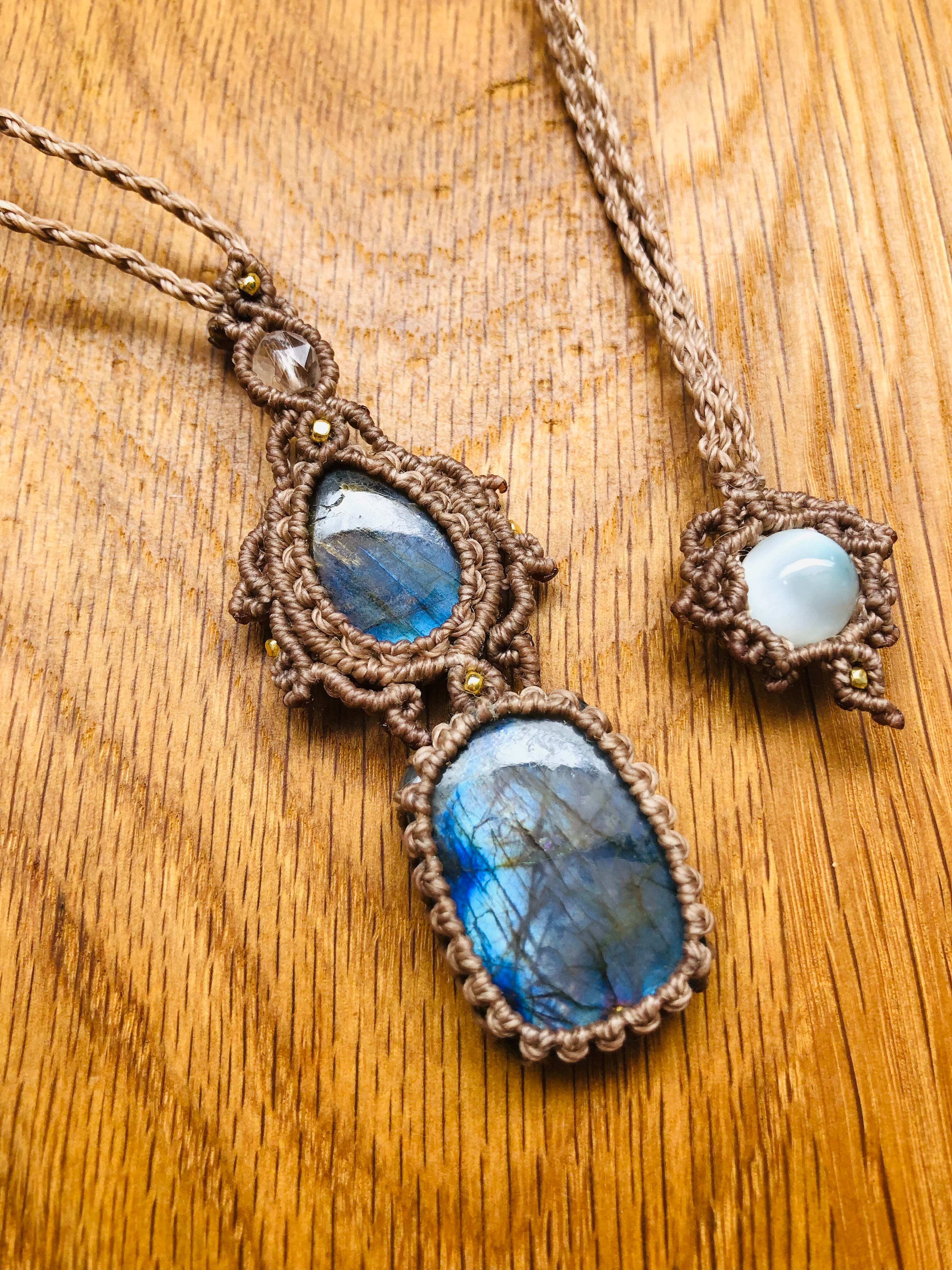 #macrame #マクラメ#ラブラドライト#ラリマー#天然石のお洋服屋さん
